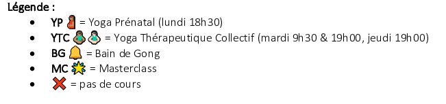 Calendrier des Cours Collectifs 2026